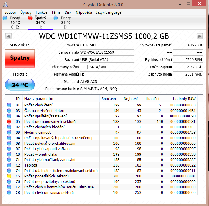Jak jsem již psal, test neproběhl kompletně, hláška o chybových sektorech, ty ovšem v toolu opravit nešli.
