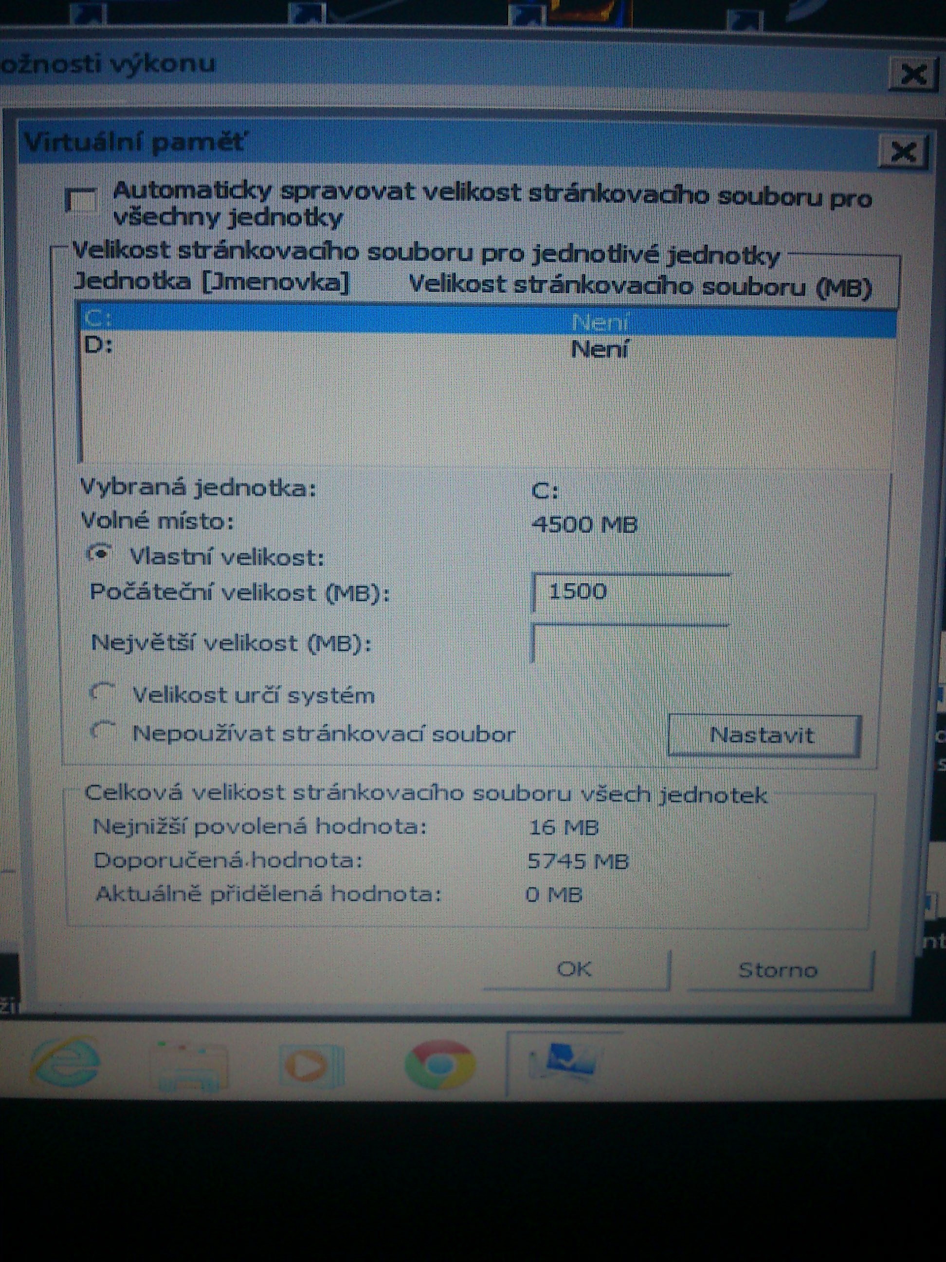 Mám tam jeden hardisk, ale mám tam místní disk C a D na céčku mám 96 a nějaké drobné a na tom mám volné 4,5GB a na místní disk D u něho nemám nic napsané jak jsem psal v první příspěvku, ale tam jsem měl volné asi 50 GB --- Doplnění předchozího příspěvku (16 Pro 2012 19:36) --- A jinak co by se stal...