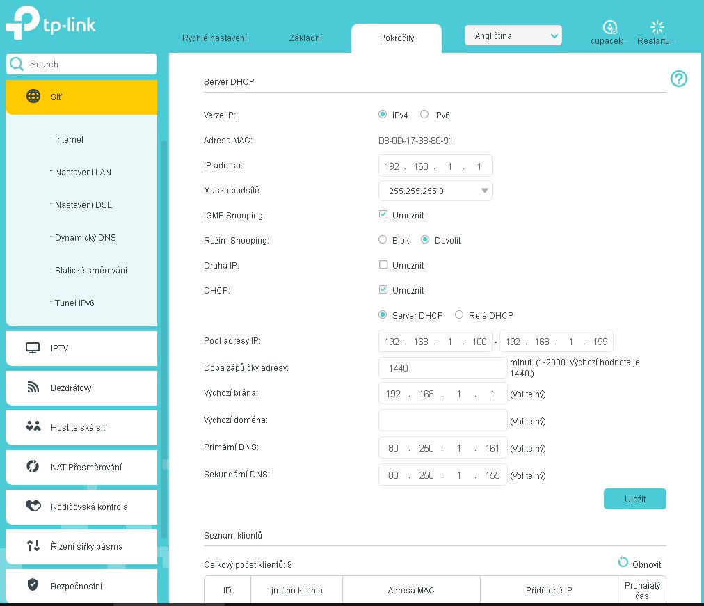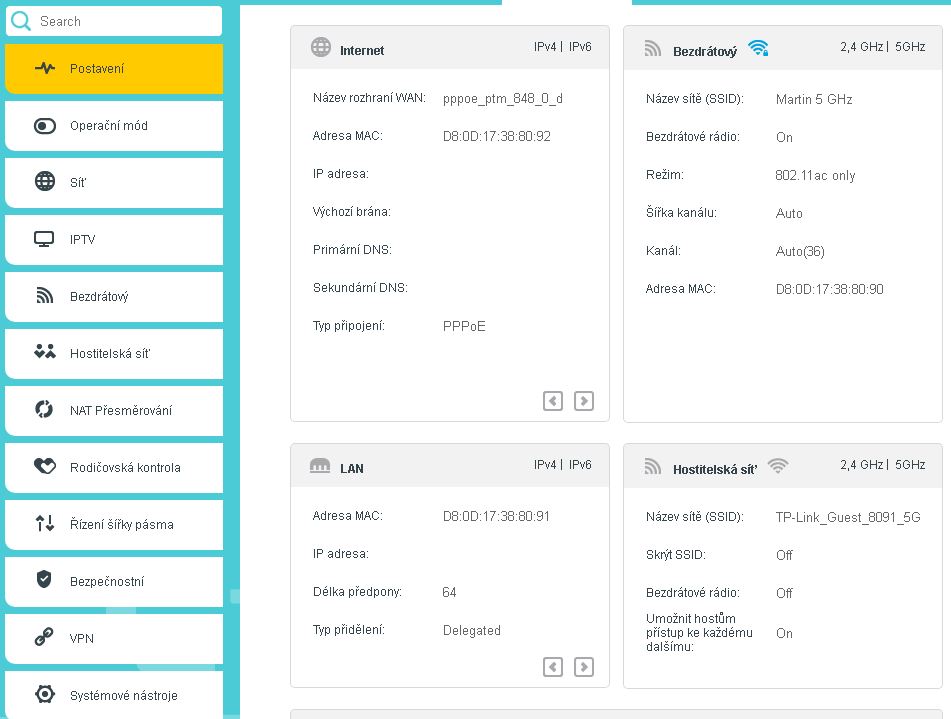 Zatím od nastavení DNS poskytovatele WiFi funguje. Pro jistotu přidám log advanced / status.