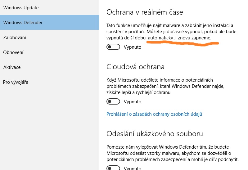 Re: Windows 10: trvalé vypnutí programu Windows Defender