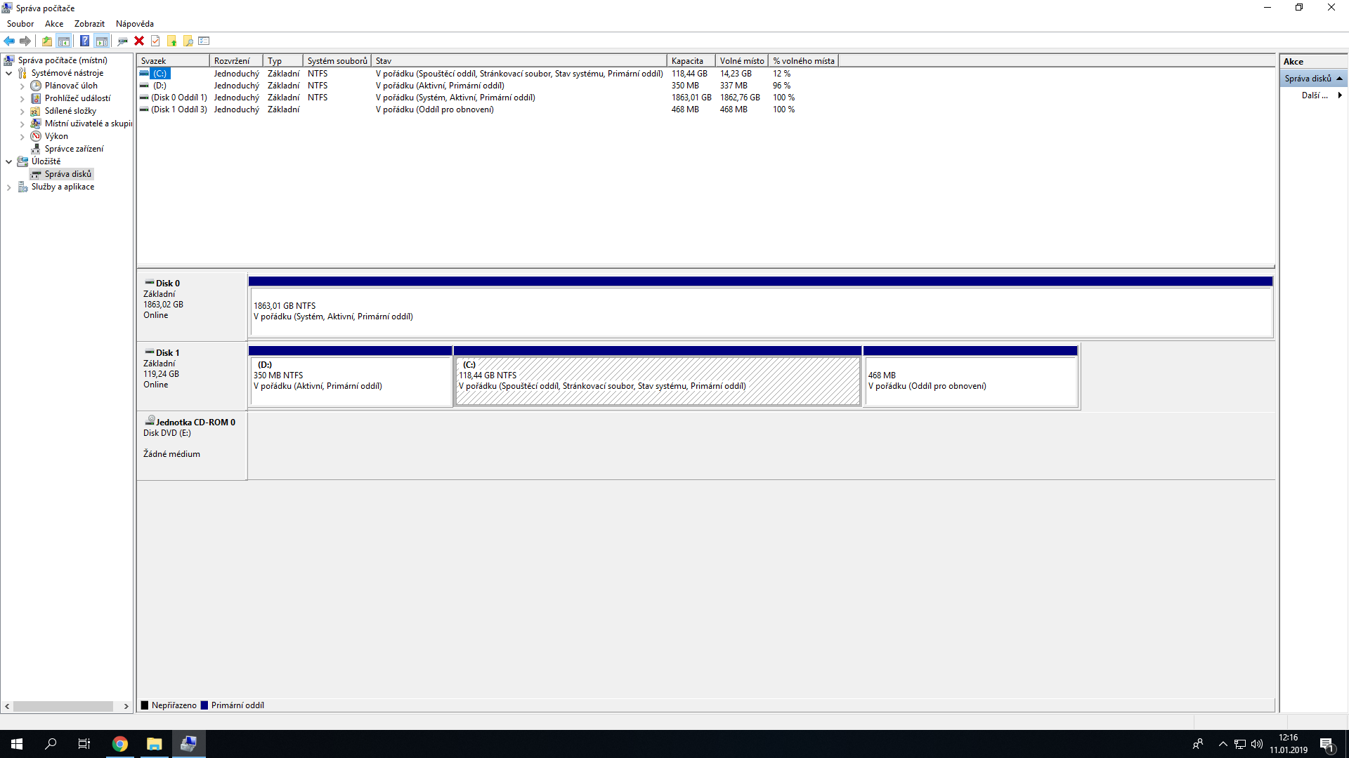 zdravím, po přeinstalovaní win 7 na win 10, mi naskočilo jen 120gb ssd disk ale druhý klasický 2Tb ne..při instalaci jsem normálně dal win na ssd (c) a druhy sem nechal volnej(d), po instalaci se vytvoříl disk d s mistem 330mb který ale bere z toho ssd, zatim co nermální disk nikde .. za pochopení p...