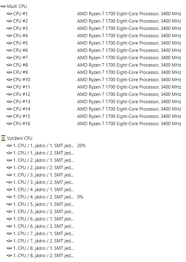 Ahoj, mám 8 jádrový Ryzen 7 1700. Včera jsem zkoušel přetaktovat procesor, upravil jsem volty a výši frekvence. Párkrát mi to spadlo, ale nakonec se mi podařilo pc stabilizovat. V biosu jsem upravoval i jiné položky.Druhý den(po restartu) mi pc začalo ukazovat jiný počet jader a to 16. Zvedla se mi ...