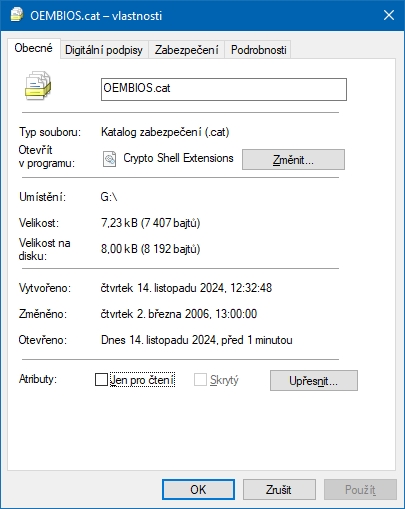 Ted se teda priznam, ze moc nevim co po me chces. Soubor oembios.cat najdu, otevřu, ale CRC32 .. jsem vedle jak ta jedle.
