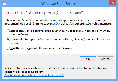 SmartScreen varuje před podezřelými staženými soubory