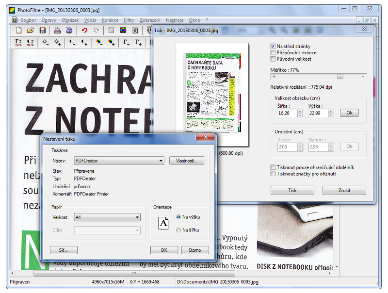 PDFCreator pak tímto způsobem provede export „tisknutého“ souboru do PDF. Na seznamu funkcí je vytváření šifrovaných PDF dokumentů, jejichž otevření je podmíněno zadáním správného hesla. Nechybí ani podpora opatřování í PDF dokumentů elektronickým podpisem. Obě funkce se zejména ve firmách mohou hodit.