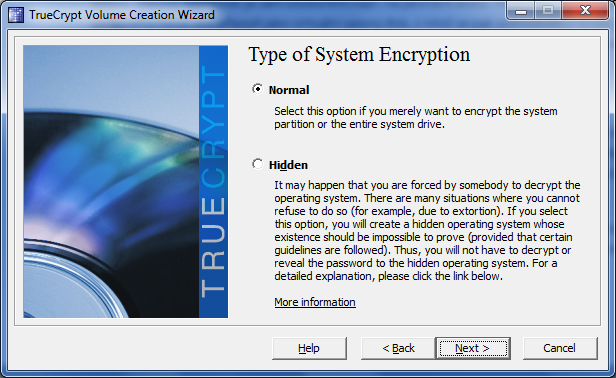 Podobně lze šifrovat i pevné disky v počítači a nejen ty nesystémové. TrueCrypt podporuje šifrování také systémového pevného disku, kdy je schopen chránit naběhnutí operačního systému heslem. Vyjmutí disku z počítače a připojení k jinému není cestou k datům. Ta jsou stále šifrována. Dobře tak lze ochránit zejména přenosné počítače, které je možné snadno někde zapomenout a jsou i častým předmětem krádeží a loupeží.
