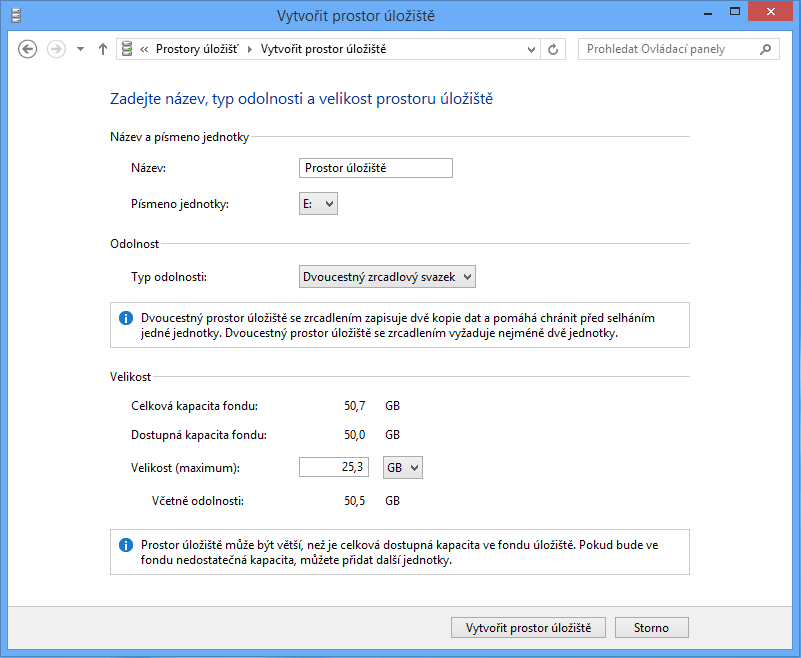 Novinkou ve Windows 8 je funkce Prostory úložišť (doslovný překlad do češtiny je pravda poněkud kostrbatý), která je částečnou alternativou k softwarovému nebo hardwarovému RAID poli přívětivější vůči běžnému uživateli. Správa úložišť a klasická RAID pole mají při vzájemném srovnání svá pro a proti, což by bylo na dlouhé povídání. Zaměřme se tedy jen na to, co umí Prostory úložišť.