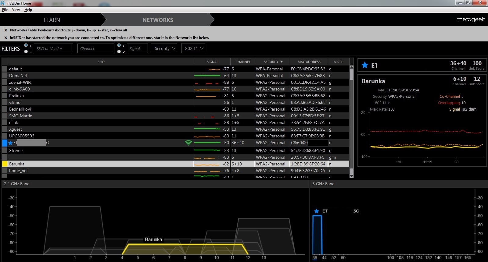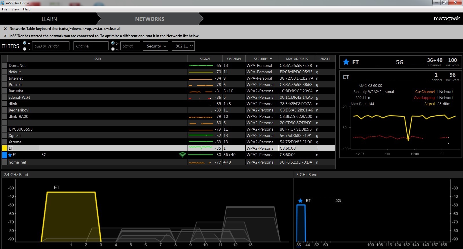 A zcela určitě vám neuniklo, že na pásmu 5GHz je pouze jediná síť (moje). Tedy tohle pásmo je prozatím celé volné.