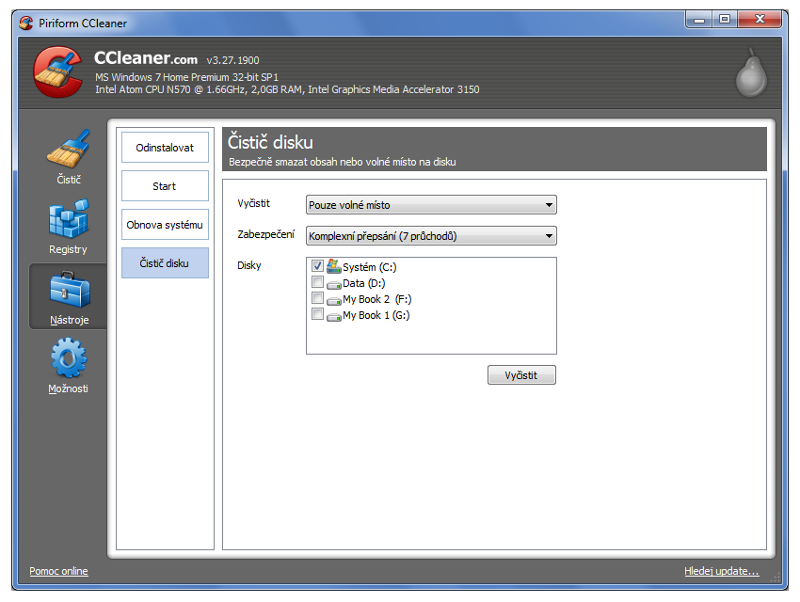 A na samý závěr se ještě zastavme u programu CCleaner, jenž slouží například k vyčištění systémového registru nebo odstranění zbytečných souborů z pevného disku, které po své činnosti opomněly odstranit jiné programy. Poslouží ovšem také pro smazání veškerých dat, které na pevný disk kdy uložily všechny rozšířenější webové prohlížeče.