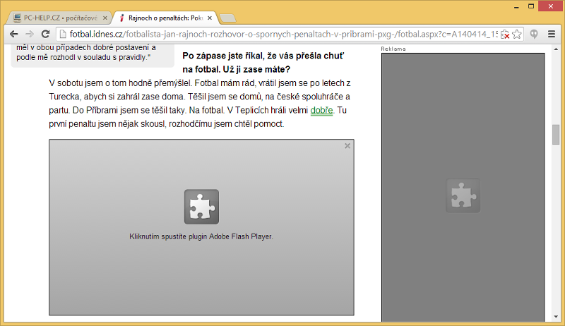 Podobné je to i s další prvky na webové stránce, které vyžadují některý z plug-inů. Samozřejmě, že někdy prvky nejsou přímo viditelné, takže místo nich není možné zobrazit zástupný objekt. Z tohoto důvodu Google Chrome symbolem v adresním řádku upozorňuje na skutečnost, že si webová stránka vyžaduje některý z plug-inů. Kliknutím na tento symbol lze plug-iny aktivovat.