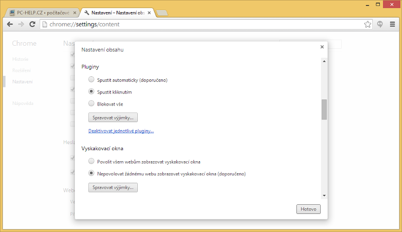 Prohlížeč Google Chrome ve výchozím nastavení ponechává neaktivní pouze plug-iny související s technologií Java, ve kterých se velmi často vyskytují bezpečnostní chyby. V nastavení prohlížeče lze však přepnout do režimu, kdy se jednotlivé plug-iny budou spouštět až na vyžádání uživatele, tedy v situaci, kdy jsou skutečně potřeba.