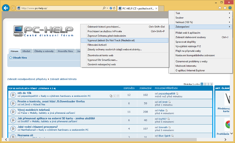 Není tedy vůbec nic platné, že Internet Explorer jako dosud jediný prohlížeč již automaticky předává webovým stránkám požadavek, že nemají uživatele sledovat. Ten totiž zůstává nevyslyšen. Efektivnější ochranou proti stopování by bylo omezení podpory cookies třetích stran, tedy cookies, které nenáleží právě prohlíženému webu, ale třeba analytickému či reklamnímu systému.