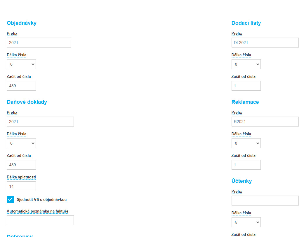 - zálohové faktury, Daňové doklady, Storna, Reklamace, Dodací listy