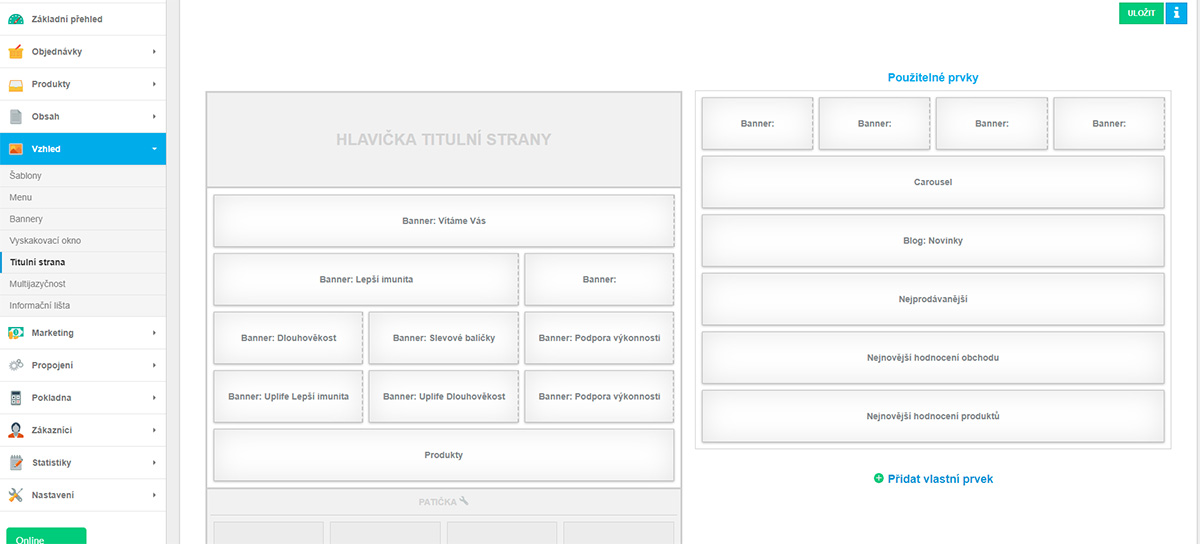 - Hlavní stránka se skládá pomocí kontejnerů, takže si ji můžete udělat podle vlastní libosti.
