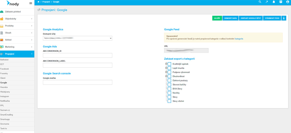 - Kompletní napojení na Google Analytics a vykreslením dat přímo do eshopu - neni nutné chodit na Google analytics