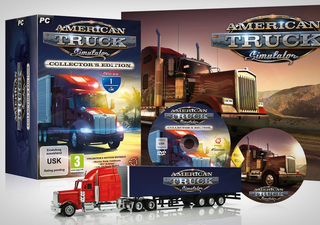 České studio SCS Software opět příjemně překvapuje a to snížením cenovky pro předobjednávku. Nyní hra stojí necelých 500 Kč a k předobjednávce dostanete rozšíření v podobě Nevady a Arizony. Nové a nové části mapy budou postupně vycházet a já osobně se moc těším. Rád bych vám také dal menší tip... Já osobně si titul předobjednal na Xzone, kde k ní dostanete i dárek v podobě hry 18 Wheels of Steel: American Long Haul a také tričko s logem American Truck Simulatoru... Já si teda myslím, že za tu cenu se to vyplatí ! Na závěr přikládám fotku sběratelské edice, ke které dostanete pěkný kamionek a to za necelých 1200 Kč !