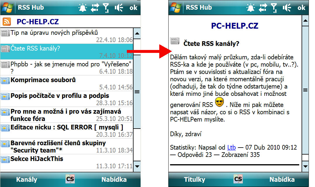 Zdravím všechny uživatele fóra, rád bych vám na tomto místě podrobně představil novinku, kterou jsme získali přechodem na verzi phpbb 3.0.7. Jedná se o zpřístupnění informačního kanálu PC-HELP (prostřednictvím ATOM standardu).