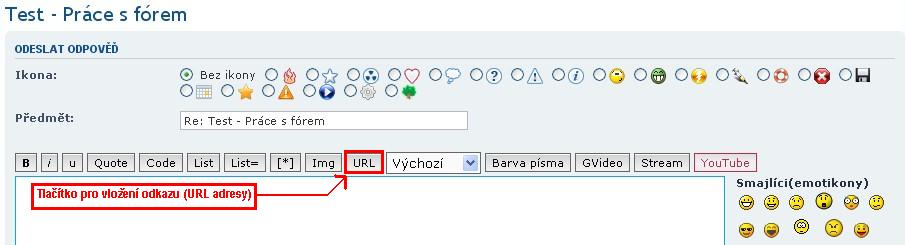 Tlačítka pro vložení obrázku (Img) a odkazu (URL) z jiných serverů