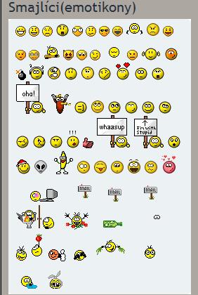 Okno z kompletní nabídkou smajlíků - pro zvětšení klikni