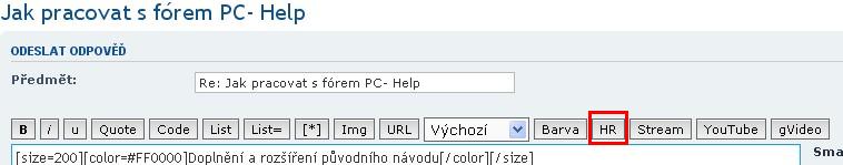 Oddělovací čára - Tlačítko "HR" v editačním okně odpovědi