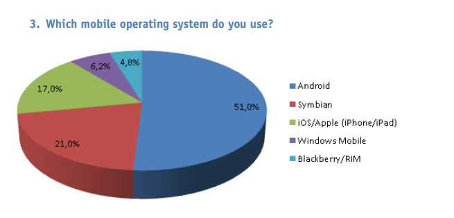 Dalším diskutabilním zjištěním je, že iOS je až třetím nejrozšířenějším mobilním systémem s podílem 17 %. Jedničkou je prý Android s podílem 51 % a dvojkou zaživa pohřbený Symbian, který si má podle zprávy IT Security Survey 2013 z tržního koláče ukusovat 21 %. Tato čísla ovšem až tak úplně mimo mísu být nemusí.