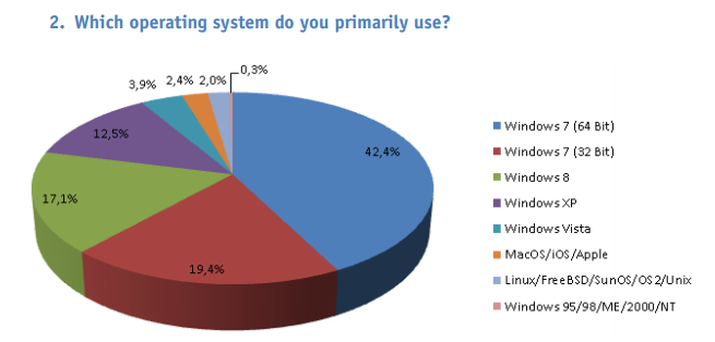 Pokud použijeme StatCounter a vytáhneme si z něj data z doby, kdy průzkum probíhal, tak zjistíme, že podle tohoto zdroje byl tržní podíl Windows 8 pouze 2,3 %, což je uvěřitelnější hodnota krátce po uvedení systému na trh, který notně podpořily velké slevové akce Microsoftu pro levný upgrade nejen z Windows 7, ale i z Windows Vista a Windows XP.