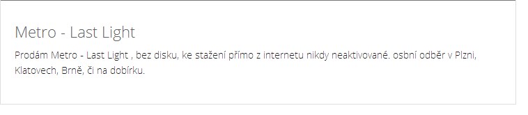 lukas.sei píše:ještě by mě zajímalo jak to bude s aktivací těch her co tamm nabízí přece jenom metro last light je přes steam a ten pokud vím nedovoluje aktivovat 1 klíč dvakrát nebo se pletu ?
