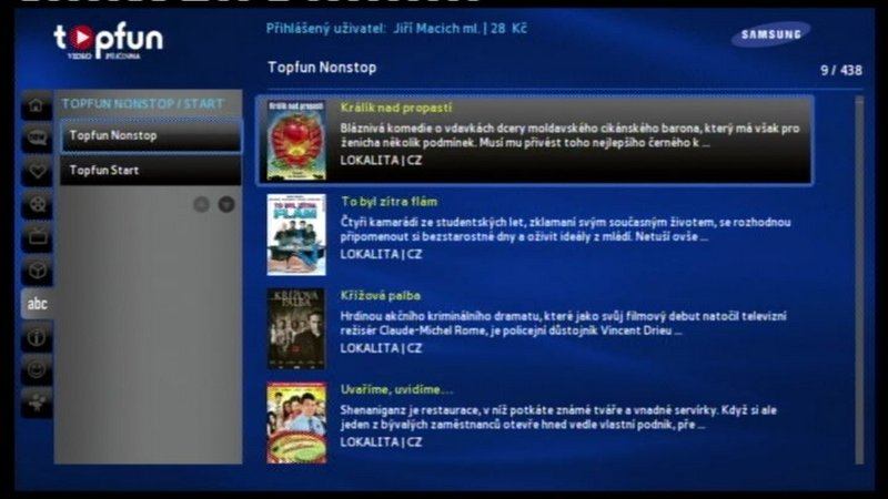 Černá elektronika značky Samsung byla první, kde se služba Topfun objevila (s roční exkluzivitou). Aktuálně má Samsung pro nové majitele svých chytrých televizorů a přehrávačů nabídku půlročního předplatného služby Topfun Start zdarma. Běžná cena služby, která umožňuje přehrát si každý měsíc až padesát filmů z archivu čítajícího nyní necelých 450 titulů, je 49 Kč / měsíc. Samsung je též jedinou značkou chytré elektroniky, kde Topfun poskytuje 3D filmy.