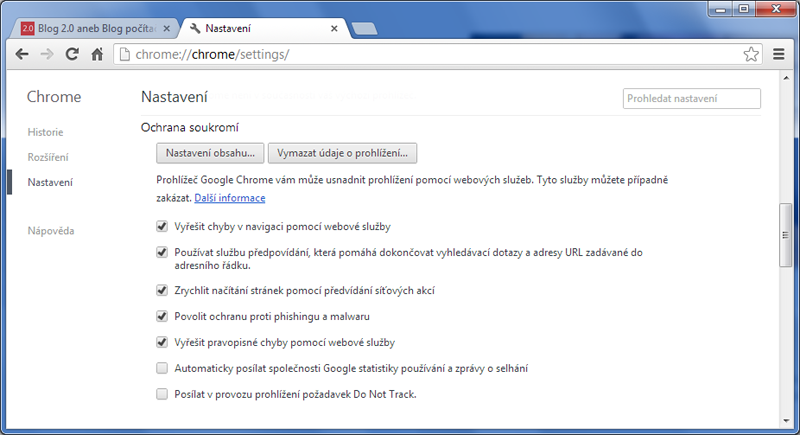 Google Chrome 23 vylepšuje podporu soukromí