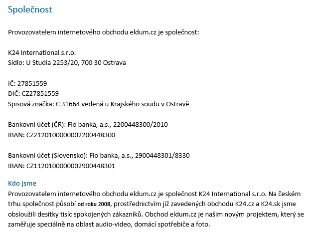Provozovatelem internetového obchodu eldum.cz je společnost: