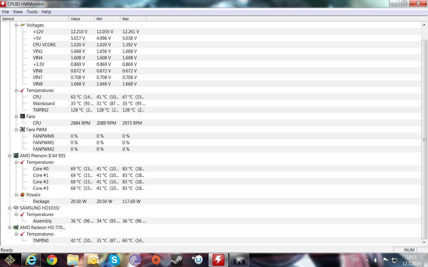 Stáhneme si program HwMonitor, pustíme HWmonitor necháme ho běžet a spustíme nějakou zátěž (hra, OCCT, HeavyLoad, apod.), po 10 minutách zatěžování zátěž vypneme a opět "vyfotíme" screenshot hlavního okna programu, je důležité aby byly všechny nabídky rozevřené a žádný teplotní senzor nezůstal schovaný v nabídce.