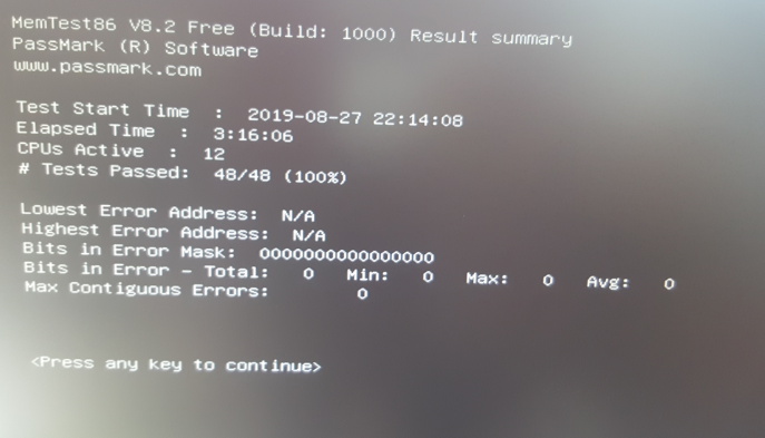 Presne to mam, jiny memtest neni. Stejne menu, stejny test, stejna vysledkova stranka. Jediny test ktery to spousti je ten, co sam po nejake dobe dobehne, u me to trva 3:16h. Testuje se cely adresni rozsah za pomoci nekolika typu testu. Jak rikam, u me bez jedineho erroru.