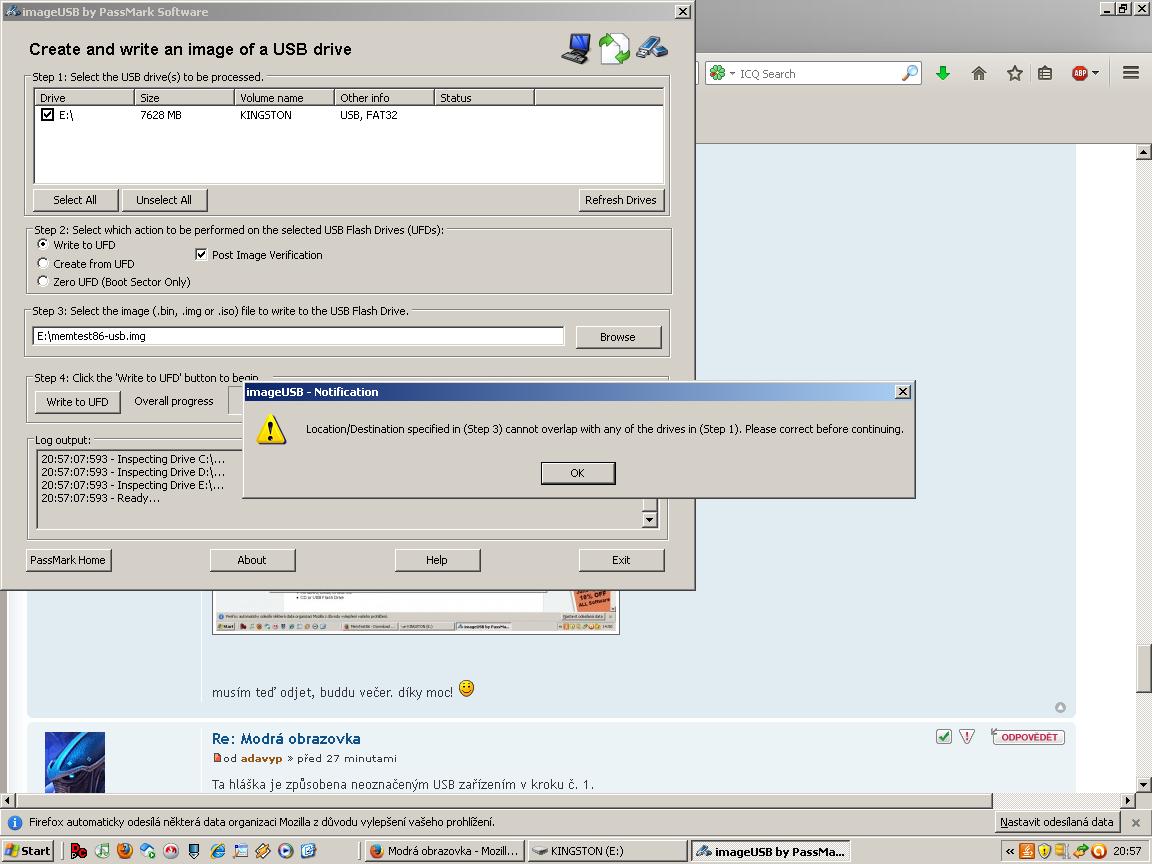 Davas tam image MemTestu ktery je ulozen na flash disku a zaroven chces flash disk formatovat :smile: To nepujde, ten .img soubor si musis zkopirovat do pocitace.