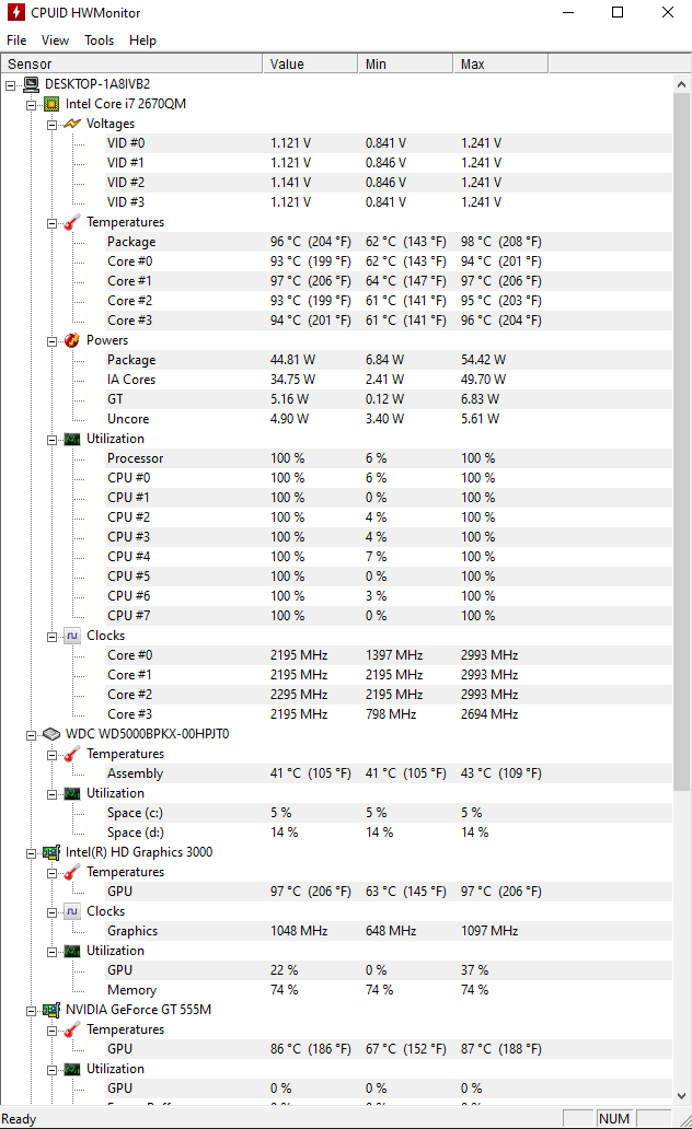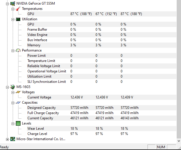 c - MSi GE620 DX Intel core i7, Nvidia GeForce GT555M, origo windows 7, ted windows 10 (Je divne ze HVMonitor ukazuje 0% hodnoty u Nvidie? Nevim proc)