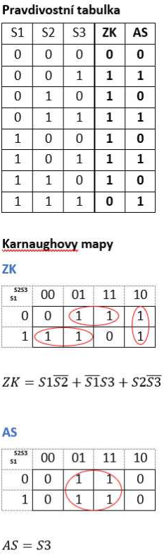 Nemělo by být AS = 1 pouze u kombinace 1 1 1 ? Tak, jak to máš napsané, by AS začala řvát pokaždé, když se spustí S3 a to i v případě, kdy S3 bude jediný běžící stroj. V tom zadání třetím strojem je zjevně míněný třetí běžící, nikoliv označený jako S3.