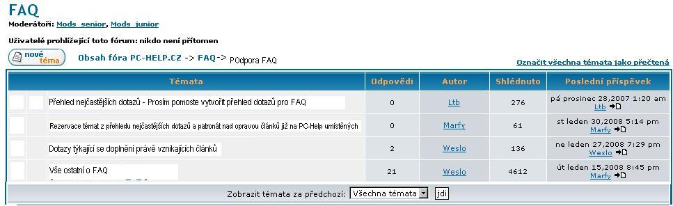 - hitparáda častých dotazů: obávám se, že tohle je dost těžké dát dohromady. Nějakou přestavu má asi každý z nás, na co se tak asi uživatelé často ptají
