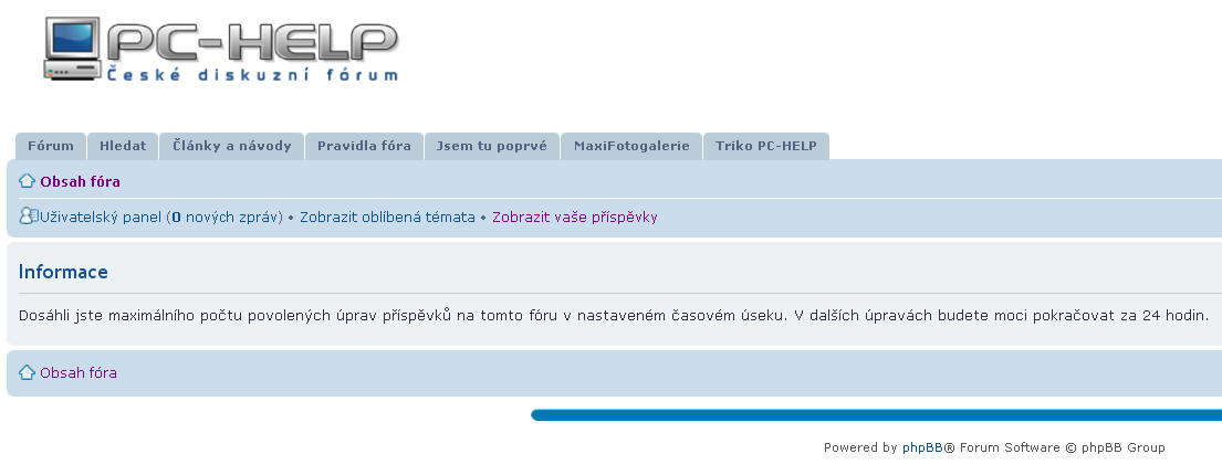 Jak to teď s Ltb tento problém řešíme, tak jsem zjistil chybu tohoto modu a jsem schopen zeditovat háčkováním kterýkoli svůj příspěvek i přes působení tohoto modu. Paradoxně jsem nyní schopen (nepohodlně) zeditovat kterýkoli svůj příspěvek, což kvůli modu asi nemohou ani moderátoři (pokud nemají nějaká extra práva, ale prý mod funguje na všechny bez výjimky) :lol: O tomto jsem informoval už Ltb.