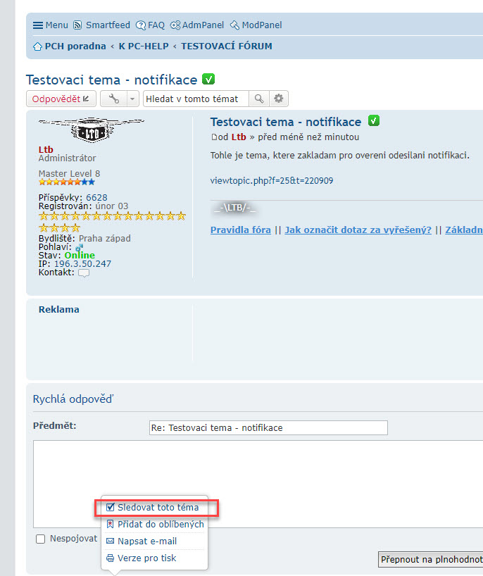 Ono je jednoduché napsat, že chyba je u tebe a řeš si to sám jak chceš. Jsme sice na poradně ale nás to netrápí a nezajímá, že někomu z PC-HELP nechodí notifikace a tak nečekej, že ti ohledně toho něco poradíme.