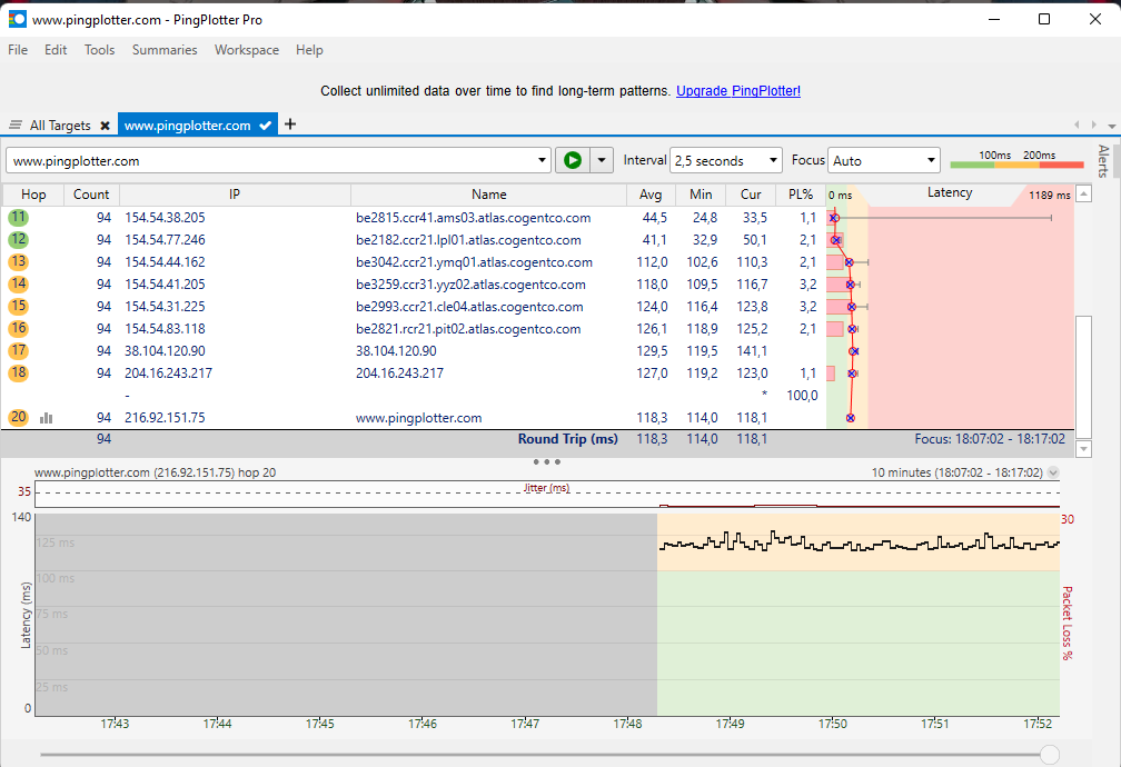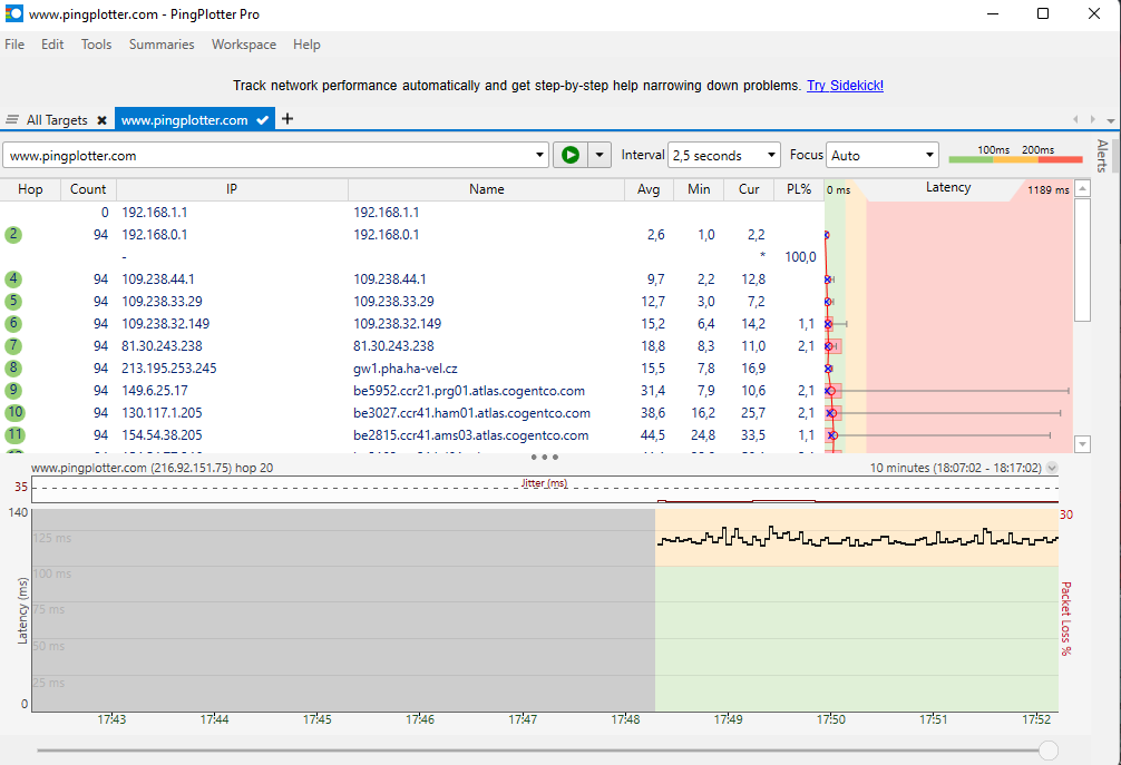Výsledky pingplotteru v příloze. Pošlu pouze dva příklady ale pokud bude potřeba mam jích víc.