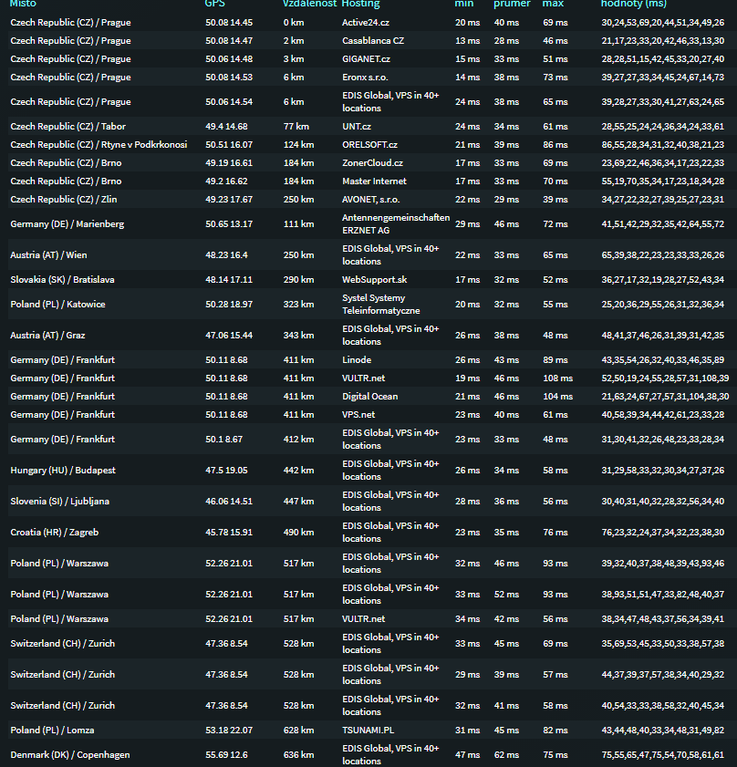EDIT 2 - pingoval jsem ještě jiný komunitní server - přikládám ping plotter - v zásadě stejné chování jako na tom prvním - akorát zde chybí spike na bráně providera. Jinak 100 ms spiky na trase k finálnímu hopu.