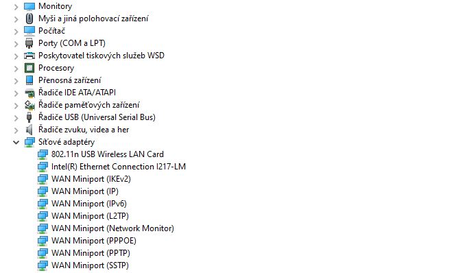 Posílám snímek obrazovky se síťovými adaptéry. Antivirus jsem měla free verzi Avast, kterou jsem teď dočasně odinstalovala, abych zjistila, jestli to není tím a zatím jsem ve fázi testování pouze s W. Defender (dočasně).