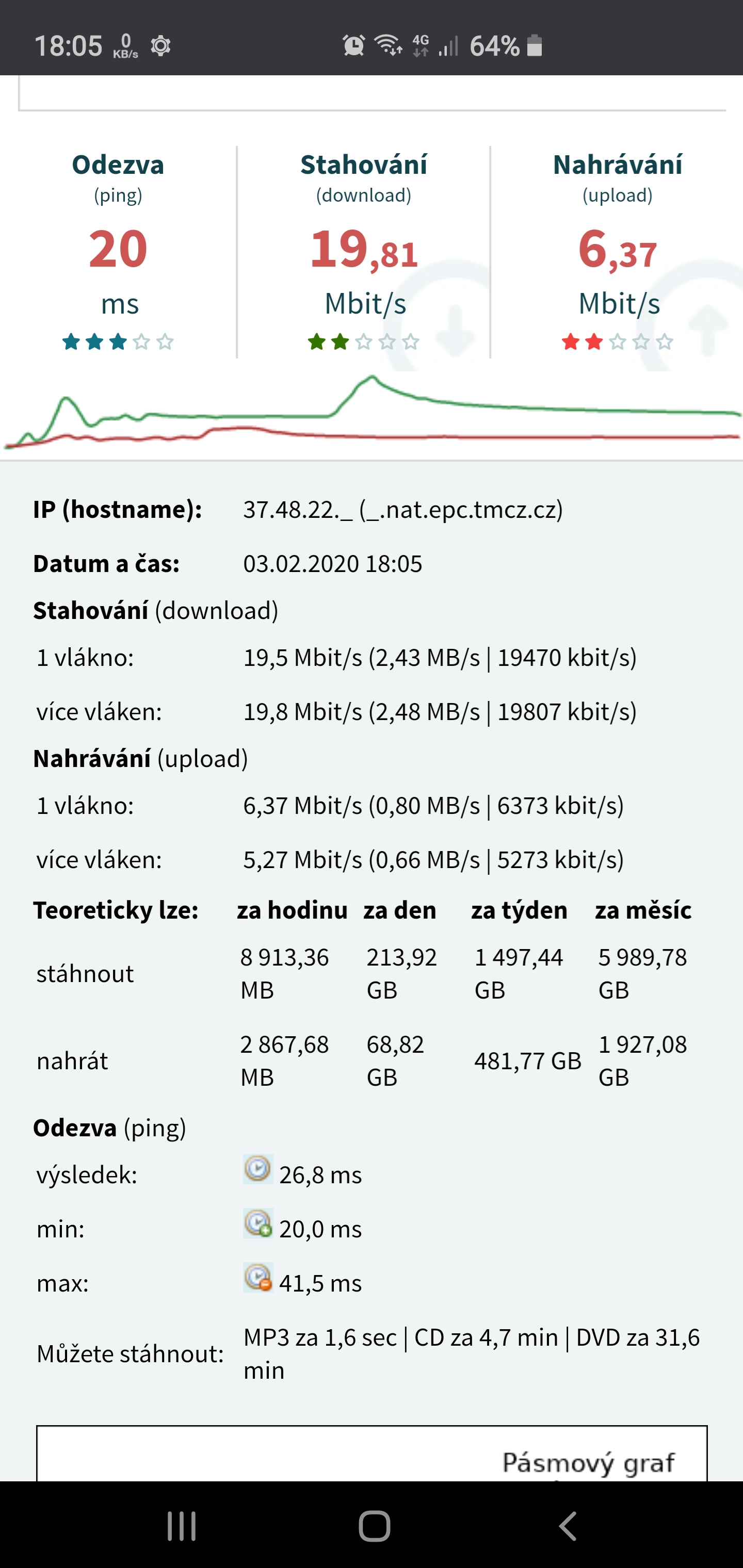 Takže další zjištění, pokud na mobilu vypnu bluetooth rychlost wifi normální, k mobilu mám připojený pouze hodinky gear s3.