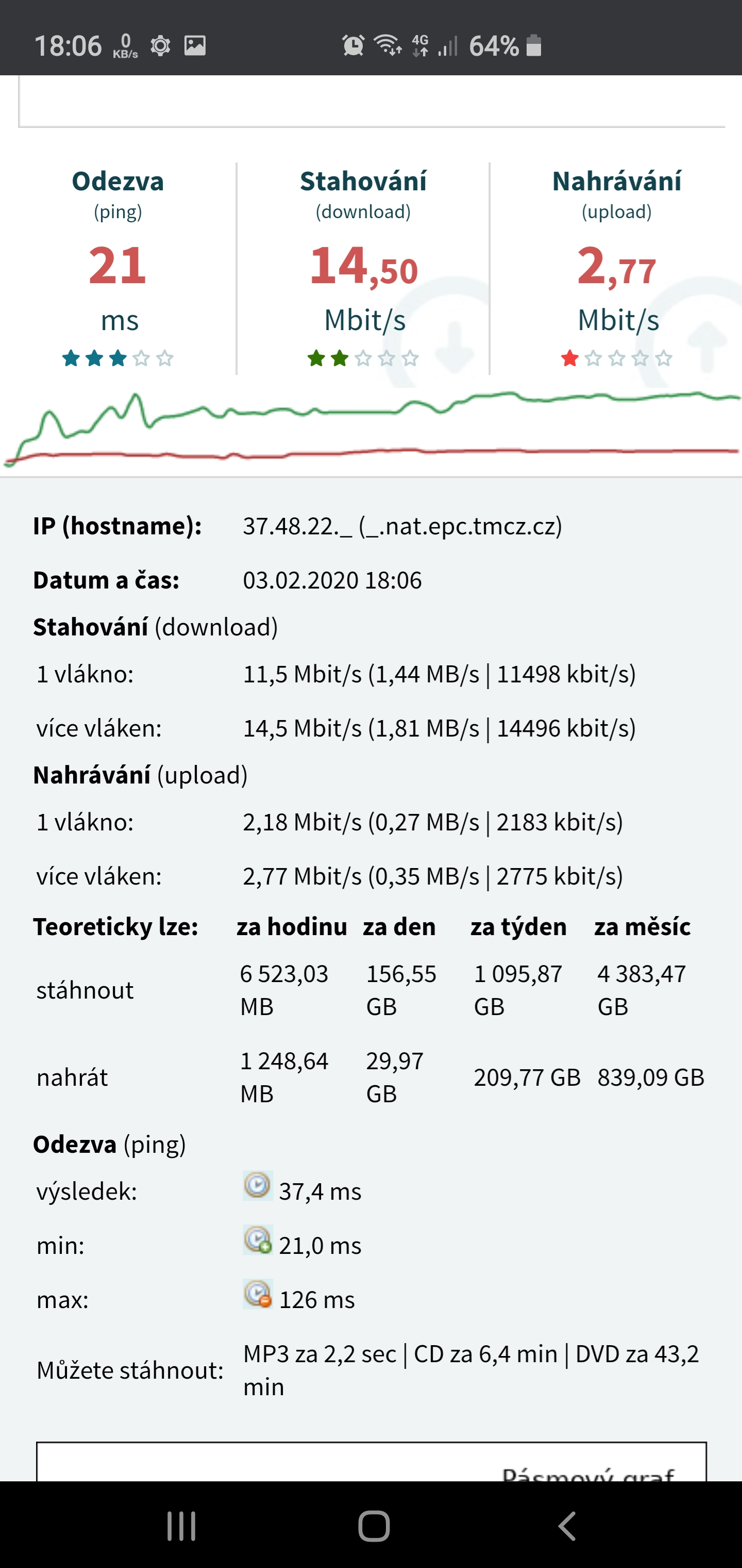 Zdravím, problém s wifi vyřešen ale teď trochu jinak : volal sem na tmobile s tím že chci změnit tarif na 50Mb/s ale bylo mi řečeno že to na mé adrese není možné, prý to nedovolí nějaká linka BTS, moc to ale nechápu, známej co bydlí o 3 baráky vedle mě má taky net od tmobile a má tarif M. A když dám měřit rychlost mobilního internetu tak mi to doma jede i 70Mb/s,tak proč mi nemůže jet ten pevný internet od nich taky víc než 20? Vždyť je to taky LTE.