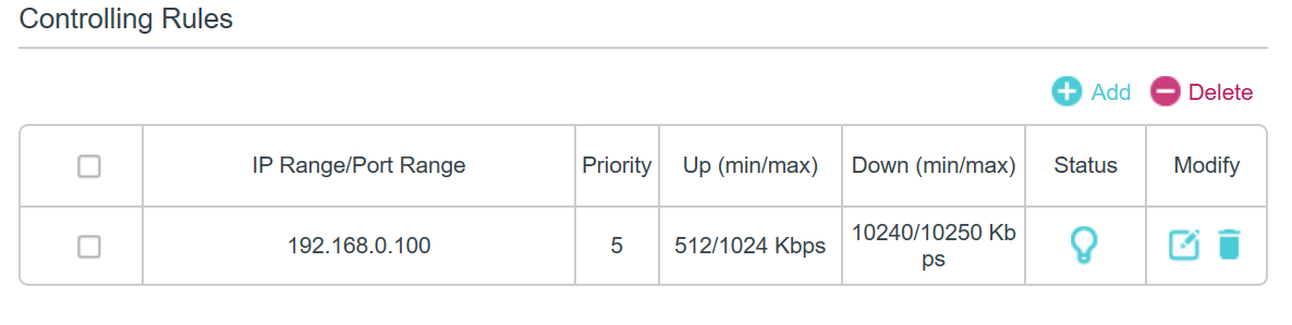 Zdravím chtěl bych nastavit omezení na archer 5 - Bandwidth Control , jak nastavit pro bezproblémový chod, a zároveň limit třeba 10 Mbps - 10240 kbps . Abych upřesnil, chci omezit internet pro dceru, zbytek abych měl já protože hraji na počítači. Jak to mám přesně nastavit Rozsah portů nastavit třeba 1 a 5 třeba ? díky za rady