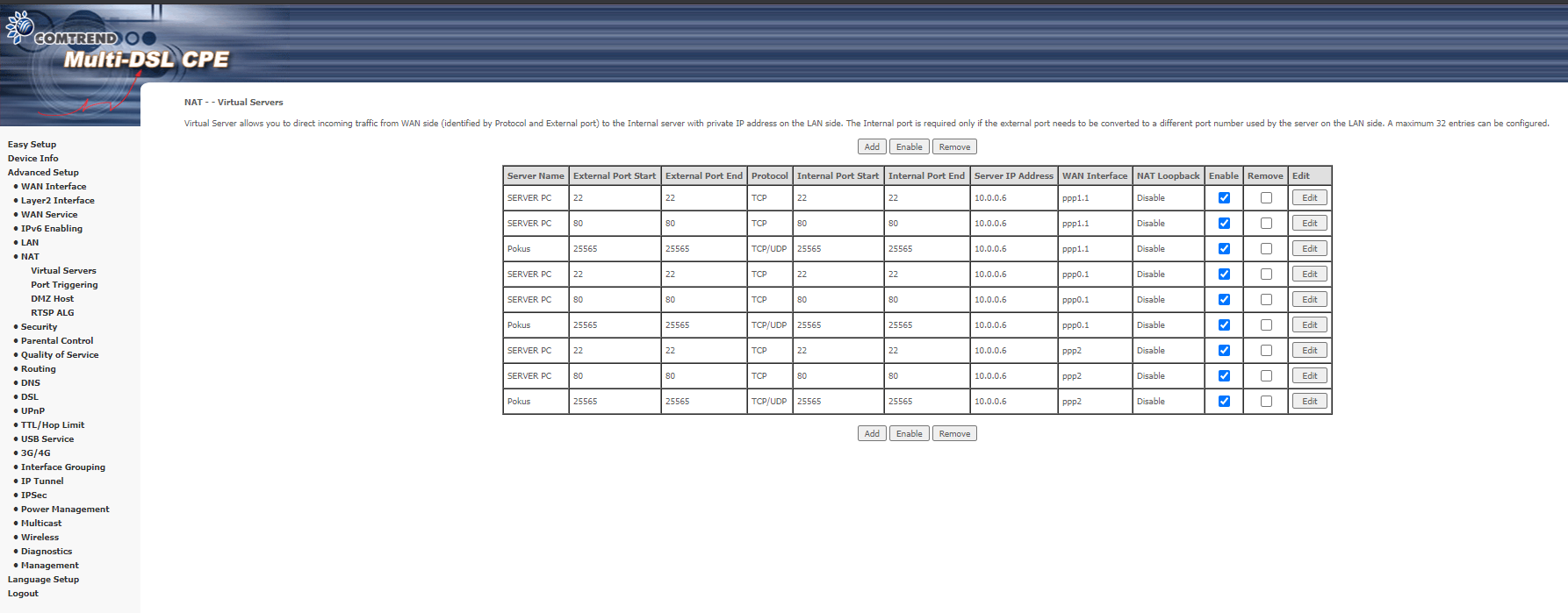 Re: Router, Comtrend VR3031-EUSB – port forwarding