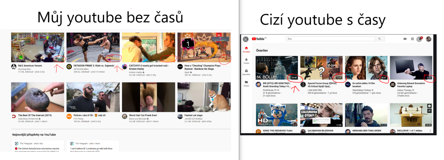 Ahoj všichni, dnes jsem zapnul youtube a zmizely mi u každého videa časy jak je video dlouhé (viz zakroužkované). Je to nějáká chyba na youtube nebo se to někde nastavuje? Nemohu to nikde najít. Díky všem.