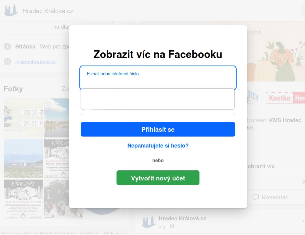 Na FB nejsem registrovaný. Jakákoliv stránka FB se buď zobrazí a po rolování uzavře, nebo se hned zobrazí toto:
