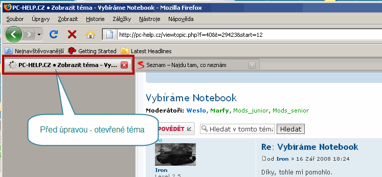 Zdravím všechny, došlo ke slibované úpravě titulků témat a hlavní strany fóra. Jedná se o optimalizaci SEO, která by měla vést k lepší použitelnosti webu a k lepšímu vyhledání webu. Na problém upozornil Myloš, tímto mu děkuji. Níže uvádím ukázku, co přesně se změnilo: