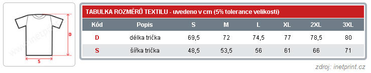 Trika lze objednat ve 2 velikostech a sice ve velikosti "L" nebo "XL". (další velikosti dostupné na dotaz)