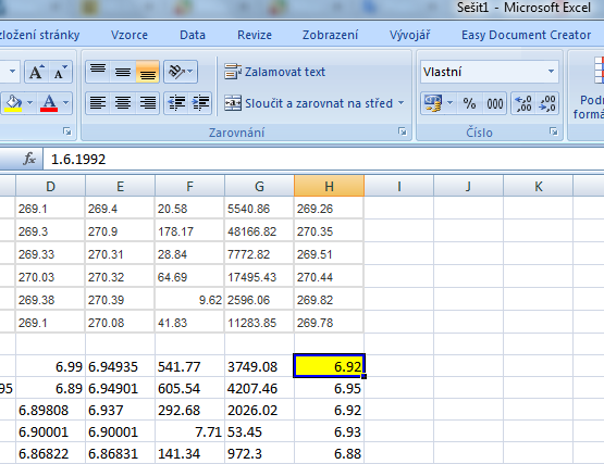 kopíruju z internetu do Excelu velké tabulky s daty a bohužel se mi určité sloupce zkopírují ve špatném formátu, takže když se kouknu, co je v té buňce, tak je tam např. nějaké datum, ale zobrazuje se správně např. 6,92 - viz obrázek.